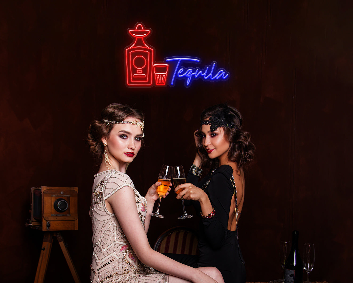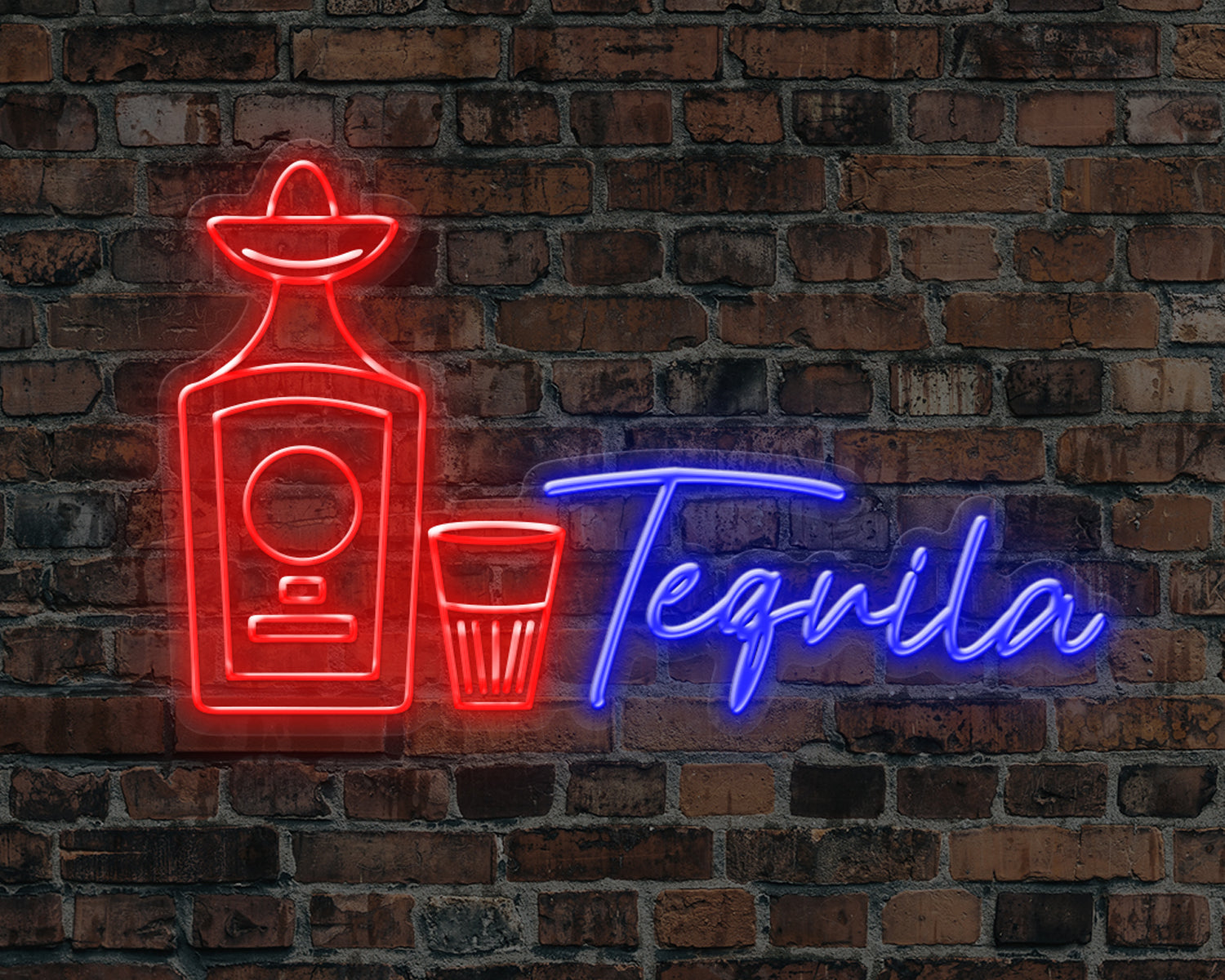 Tequila Bottle & Shot Glass Neon Sign
